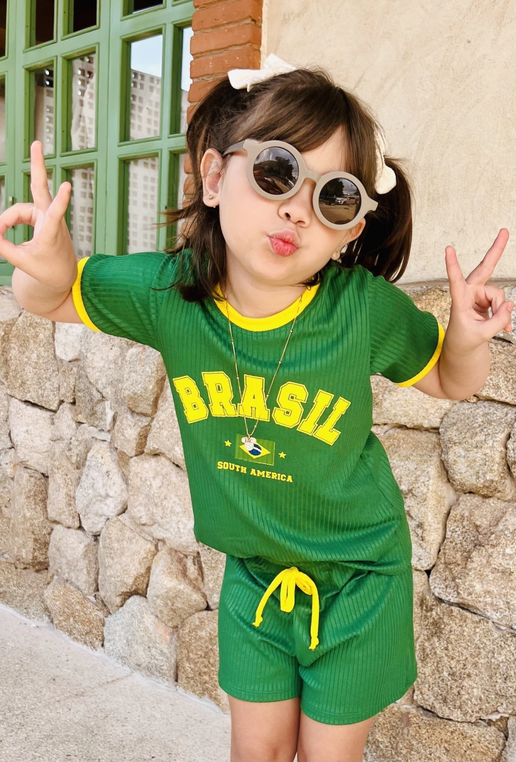 Conjunto Infantil Meninas Brasil Verde: energia e estilo em cada detalhe
