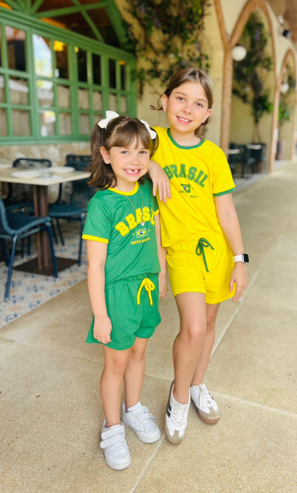 O grande diferencial do Conjunto Infantil Meninas Brasil Verde está na sua versatilidade. Ele pode ser usado tanto em ocasiões especiais, como jogos e eventos temáticos, quanto em momentos casuais, como passeios em família ou brincadeiras em casa. Sua modelagem confortável evita apertos e garante liberdade total de movimento.
