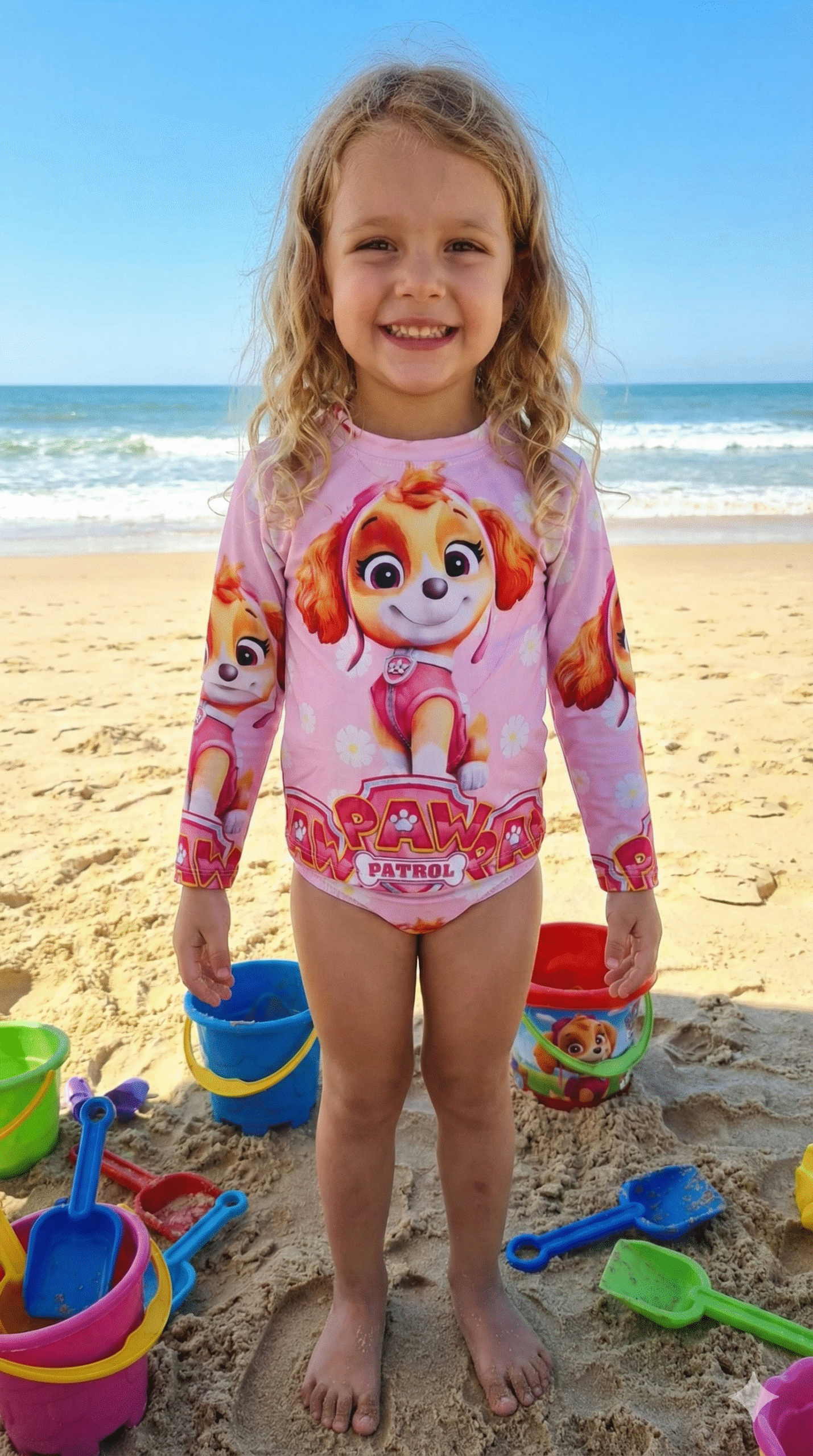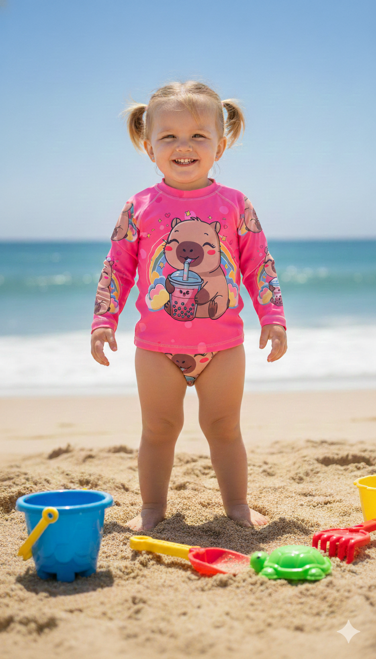 Com o Conjunto Infantil Meninas com Proteção UV, a diversão e a proteção estão garantidas.